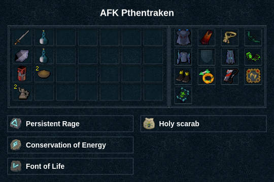 IMPORTANT NOTE: The instance speed needs to be set on Fast, not Fastest. Due to the nature of Pthentraken, any missing DPS upgrades will make it less likely to skip its Storm Column attack, resulting in guaranteed death if AFKing. Take care to meet the following requirements as closely as possible if aiming to consistently AFK.