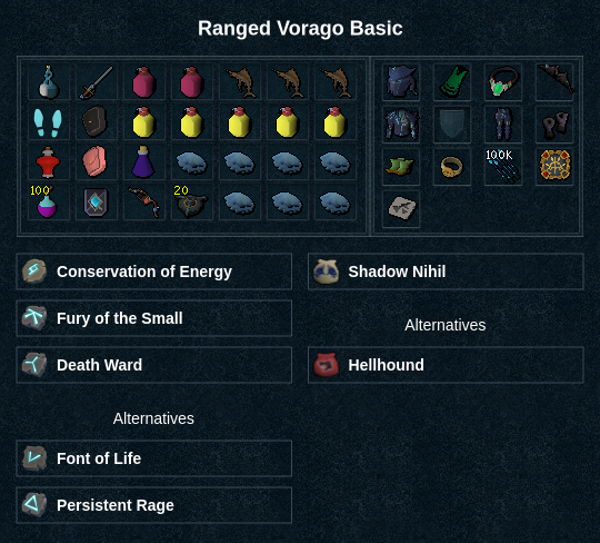 ⬥ Melee is significantly more challenging than the other combat styles, and is thus omitted.