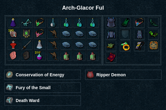 ⬥ Rotations for Arch-Glacor are not strict, as per the random nature of the boss's mechanics. For more information on general ranged rotations see #Ranged DPM Advice.