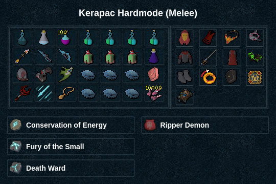 This guide assumes you are already familiar with the basic mechanics of Kerapac which can be seen here #kerapac-hm-basic and own BIS gear in Melee.