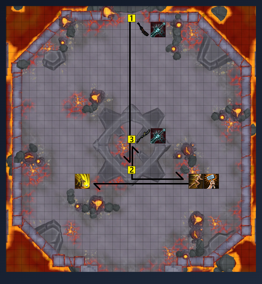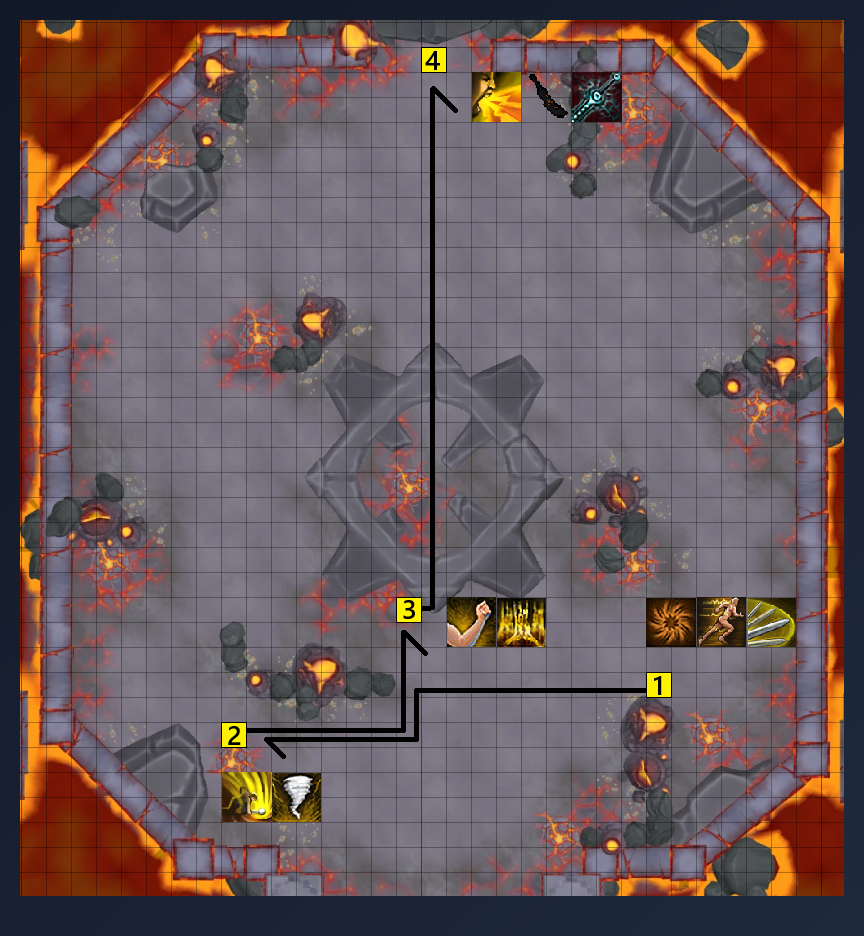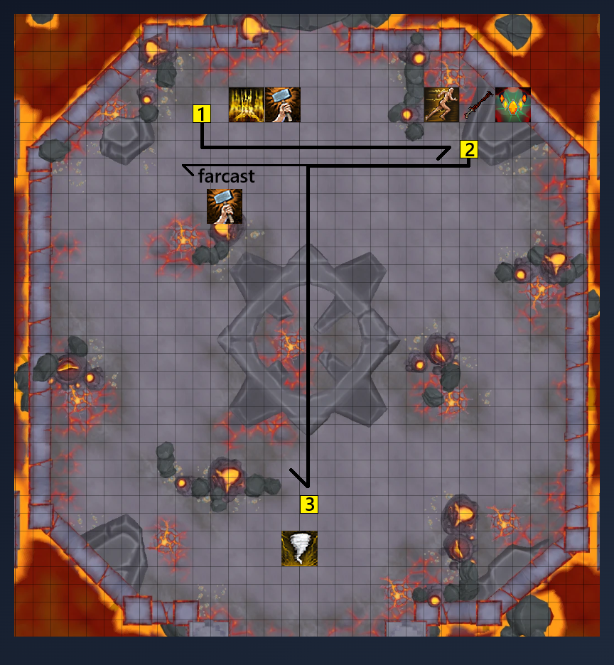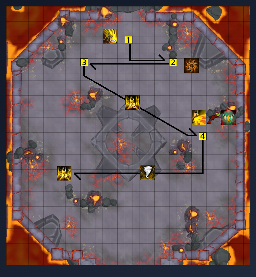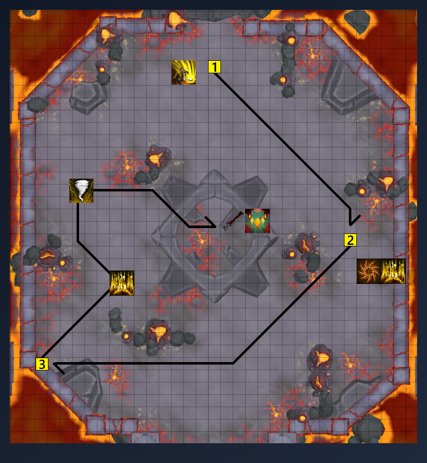• A Wall of Flame will occur around this time, make sure that all Yt-Mejkot have walked around any obstacles before moving out