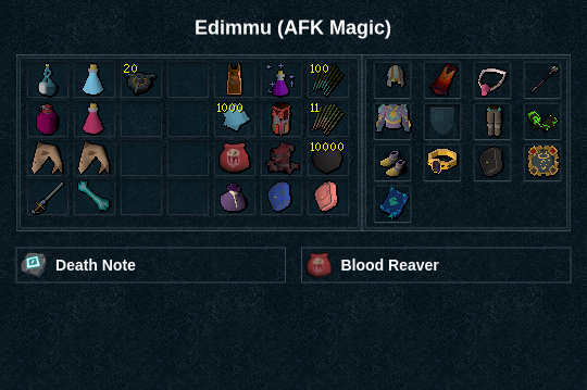 . The gear required strongly depends on the player's effort in dealing with Elite Edimmu. Even though Edimmu themselves do not deal much damage and can be out healed with mage's AoE easily, Elites pose a huge problem if trying to AFK with subpar gear and will require the player to click back and take measures to kill the Elite (e.g. laying