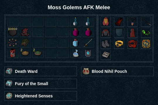 with Meteorite cannonballs to help aggro the Moss Golems.