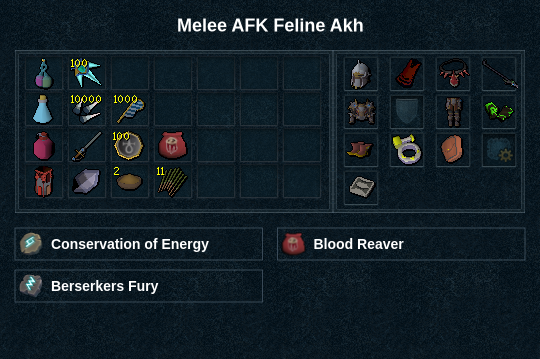 Feline akh's have harder hitting attacks than Salawas, and a special attack which deals high magic damage and makes nearby feline akh's aggressive towards you. This occurs when the mob reaches 2500 life points, and hits when the bar above their head fully charges. Despite this, they can very easily be AFK'd in the same method as Salawas, and are often killed for their common elite clue drops